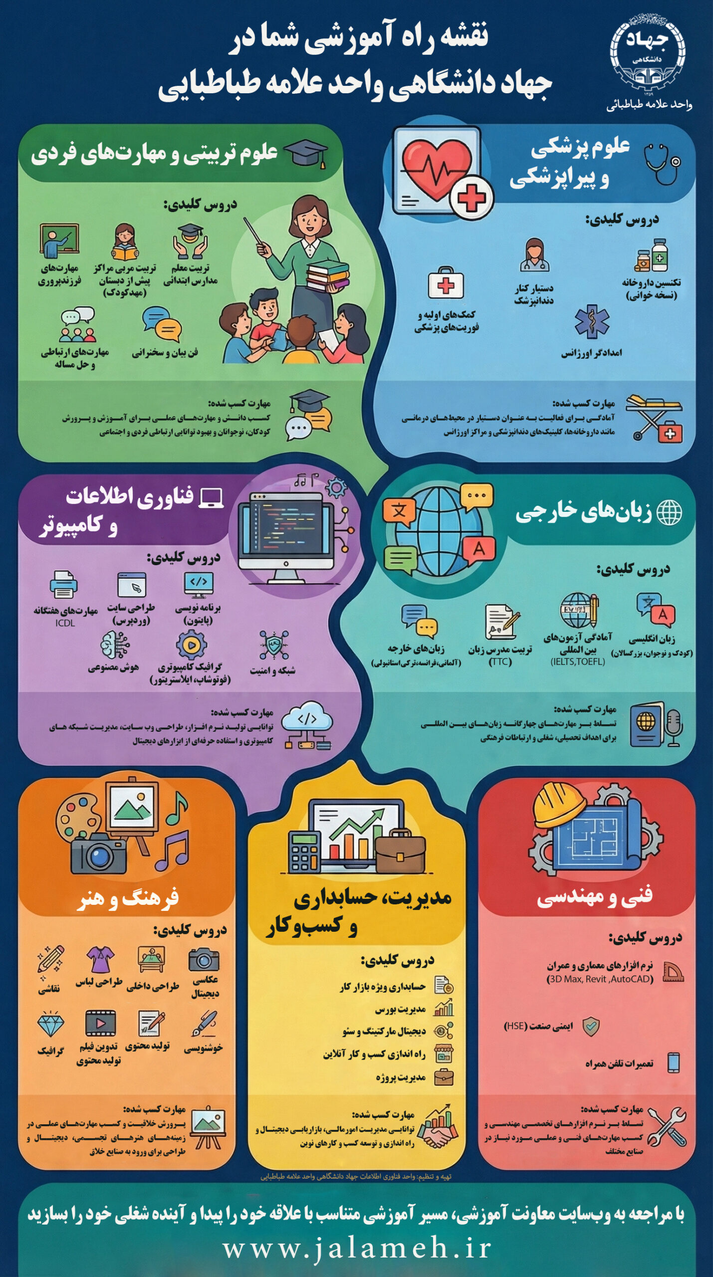 جهت کسب اطلاعات بیشتر و ثبتنام، با مراکز آموزش جهاد دانشگاهی واحد علامه طباطبایی تماس بگیرید.