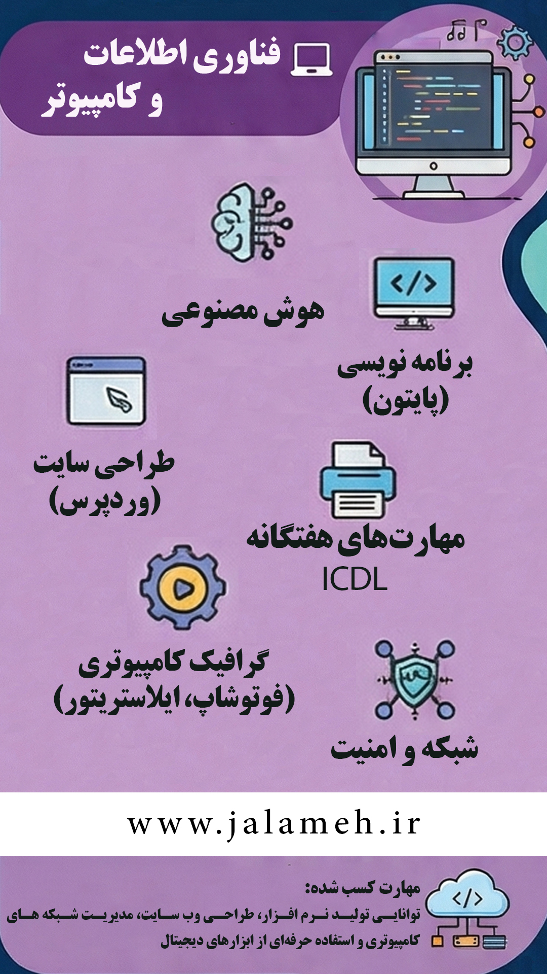 | 1 | مهارتهای هفتگانه ICDL | مرکز آموزشی تخصصی کوتاه مدت - شهرستان شهریار | 1404/10/25 | 10 | 6,500,000 | ثبتنام آنلاین |